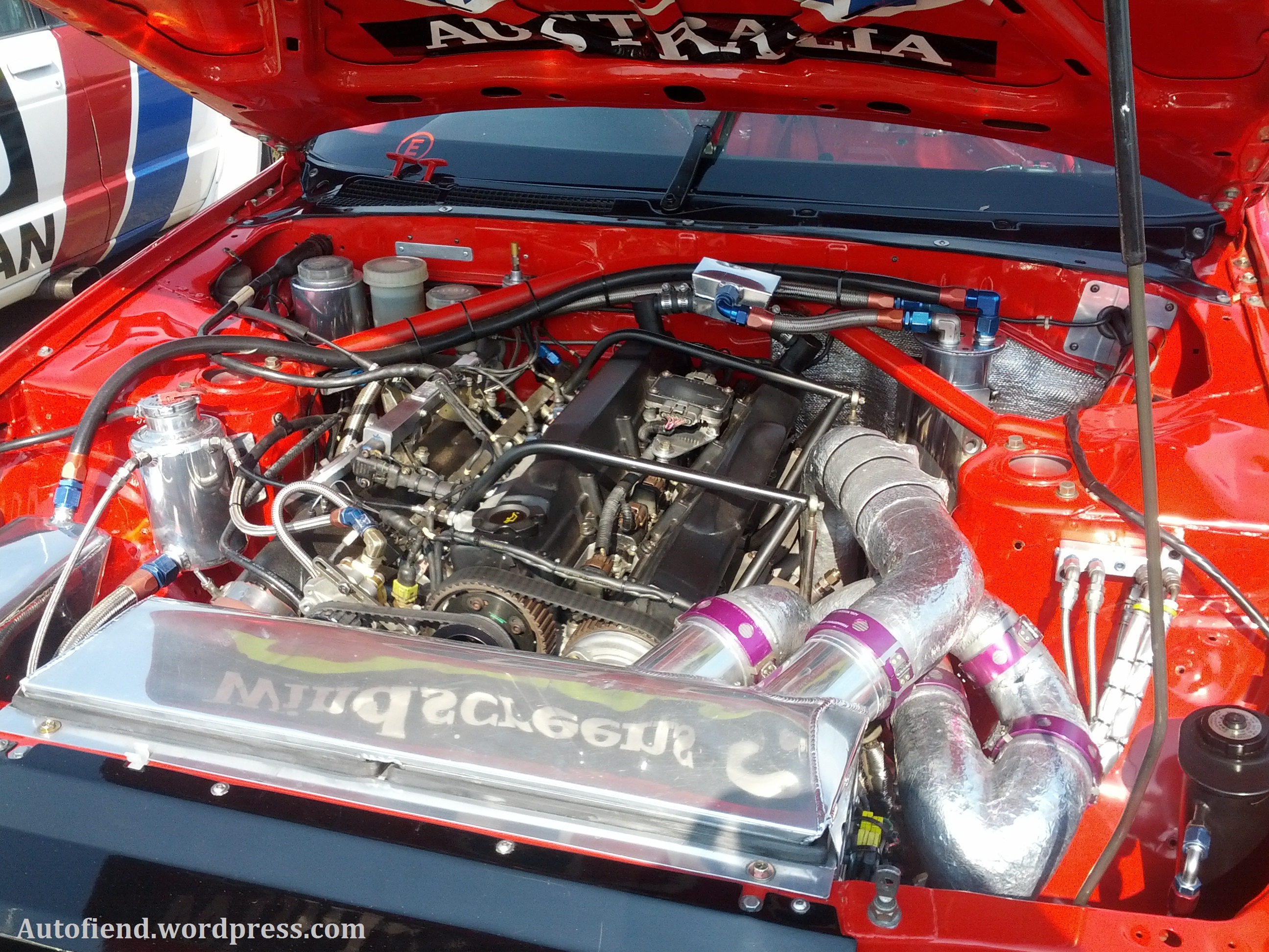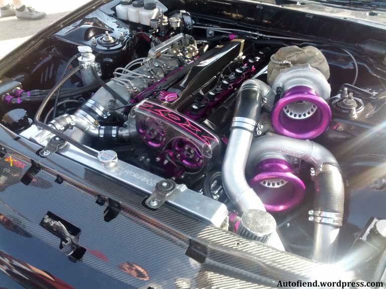 The beast within was another RB26 but this one was prepared with straight line decimation in mind. The Twin Precision Turbo’s with anodized bellmouth’s show you that its business time, the colour co-ordination of the bay is always a welcome touch.
