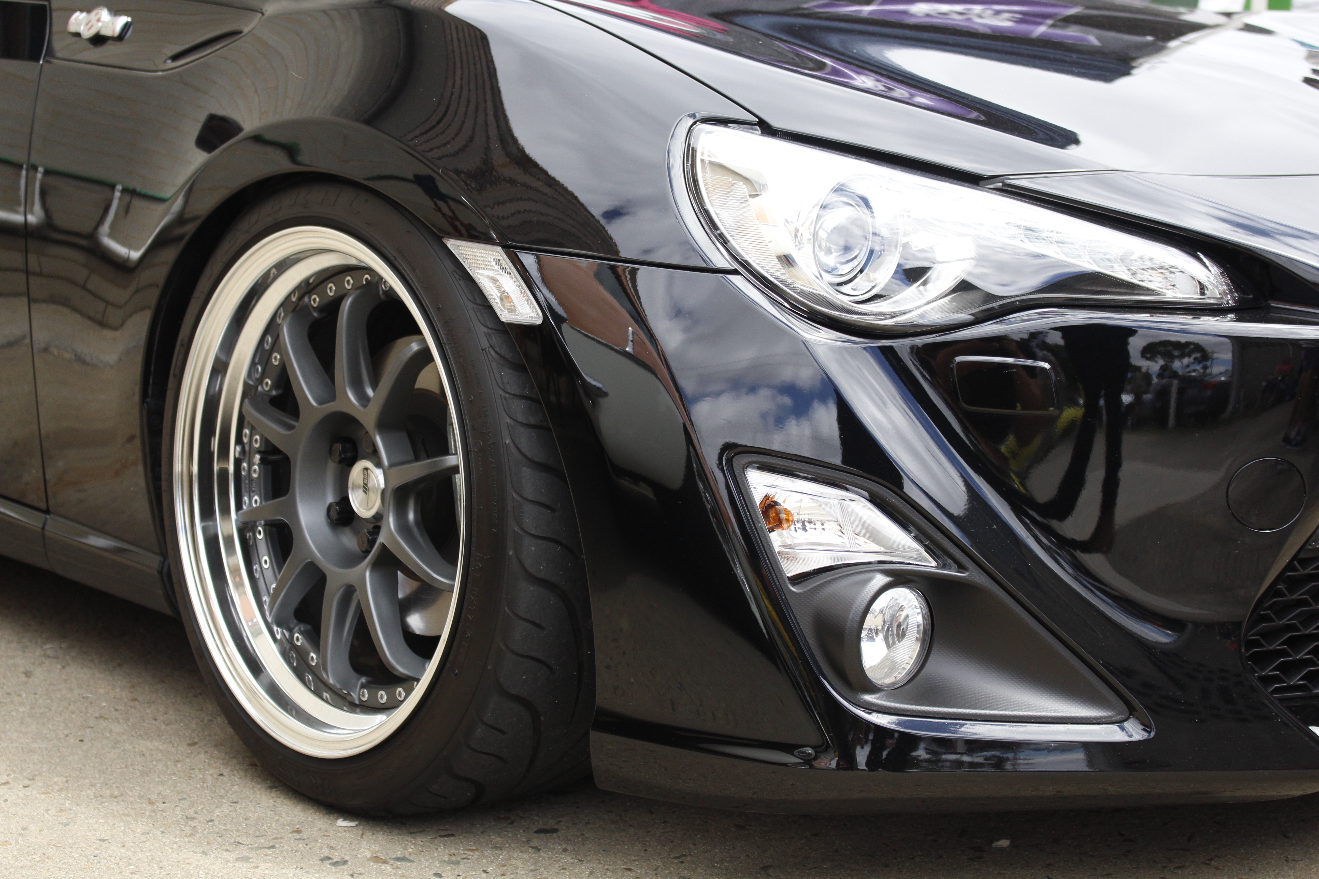 The new Toyota 86 / BRZ / FR-S has been a huge success for both car companies and has almost single-handedly revived the aftermarket parts industry around the world. This one was incredibly low sitting on what appeared to be Work CR Kai’s (though with so many replica wheels flooding the market telling real from fake is getting hard).