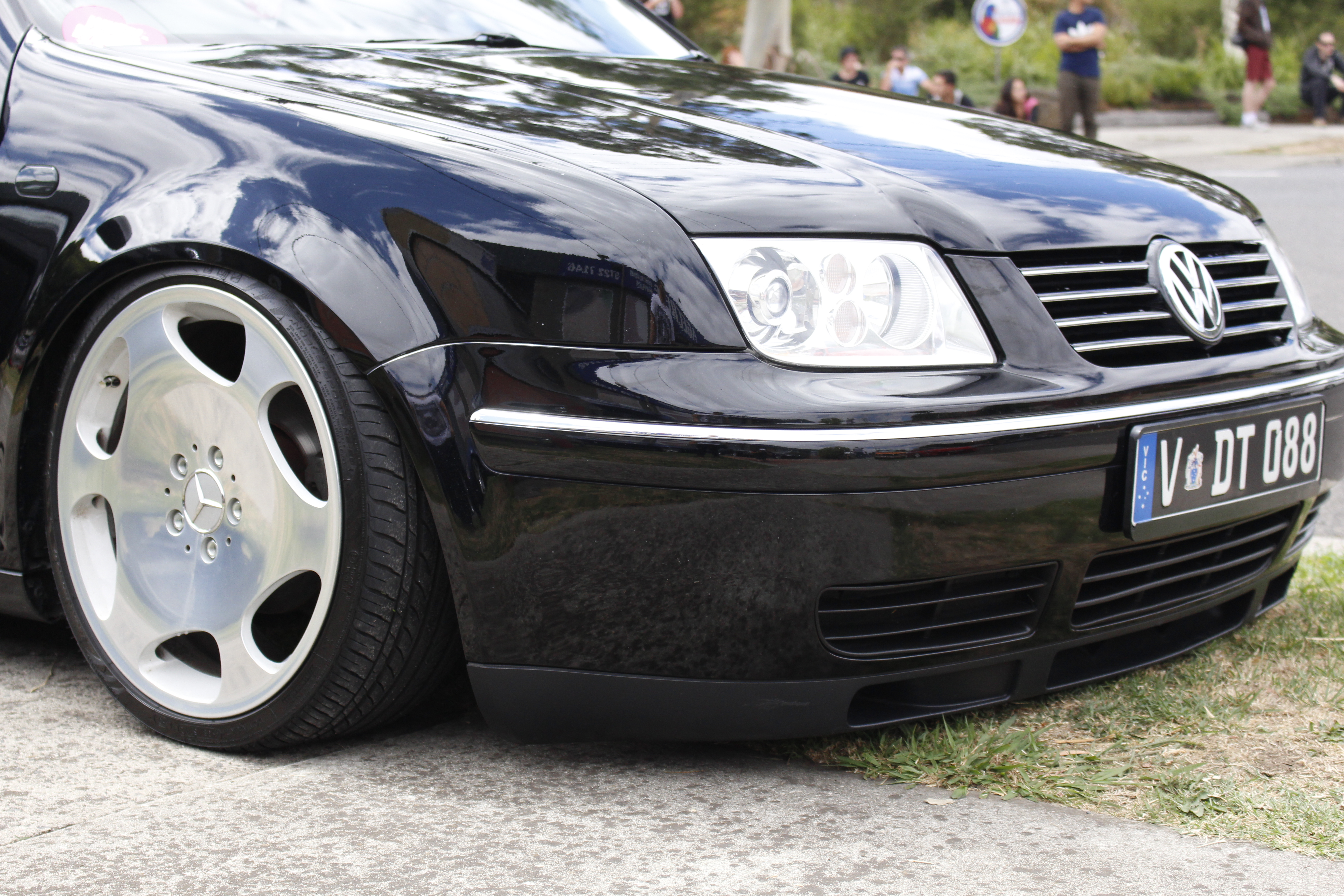 A very low and well fitted Bora riding on Mercedes Benz wheels. A massive trend in Europe.