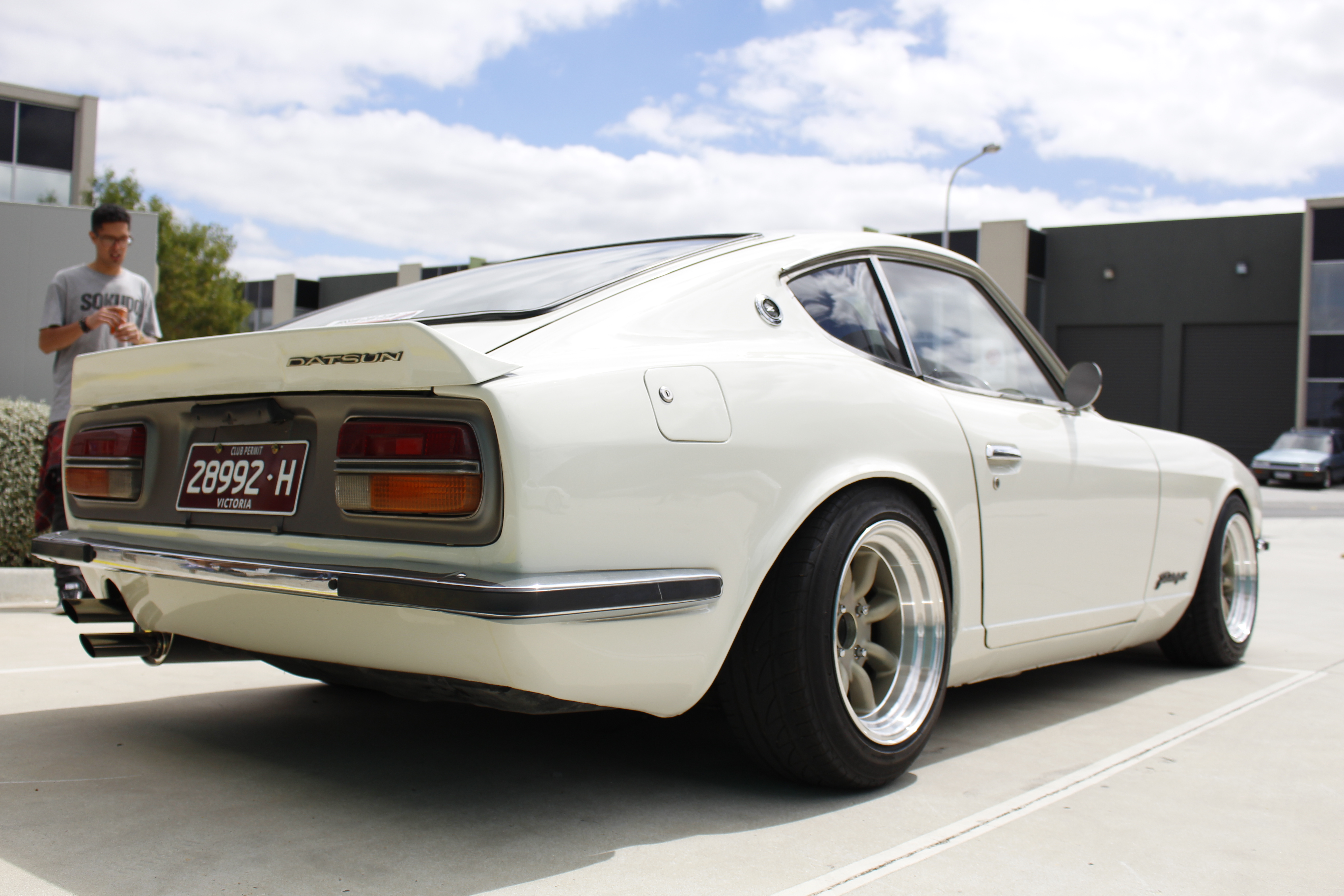 This thing stole the show for me. So well done. Sizing of the wheels was not over the top and the vintage Fairlady exhaust was a great feature. So Fresh and So Clean.