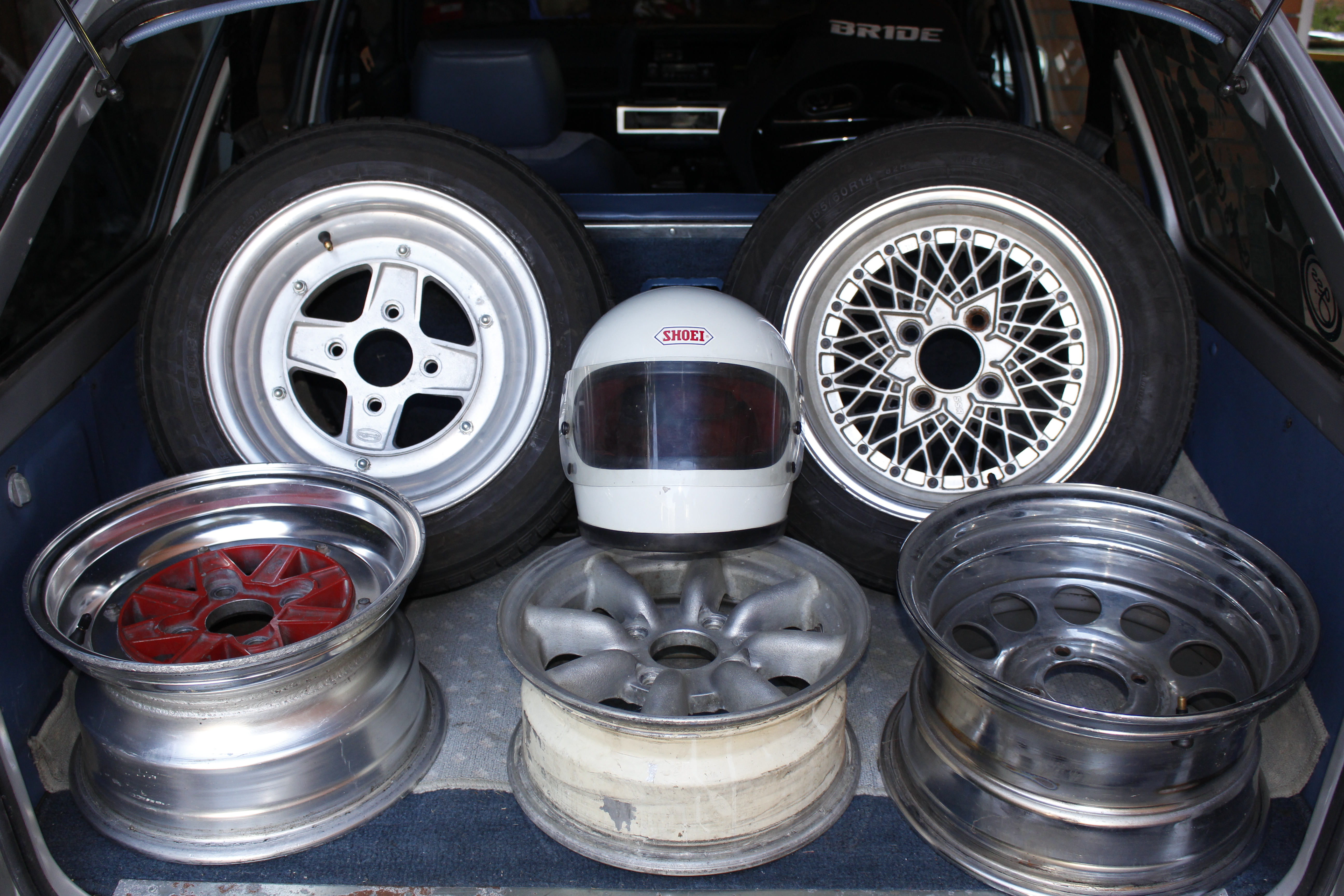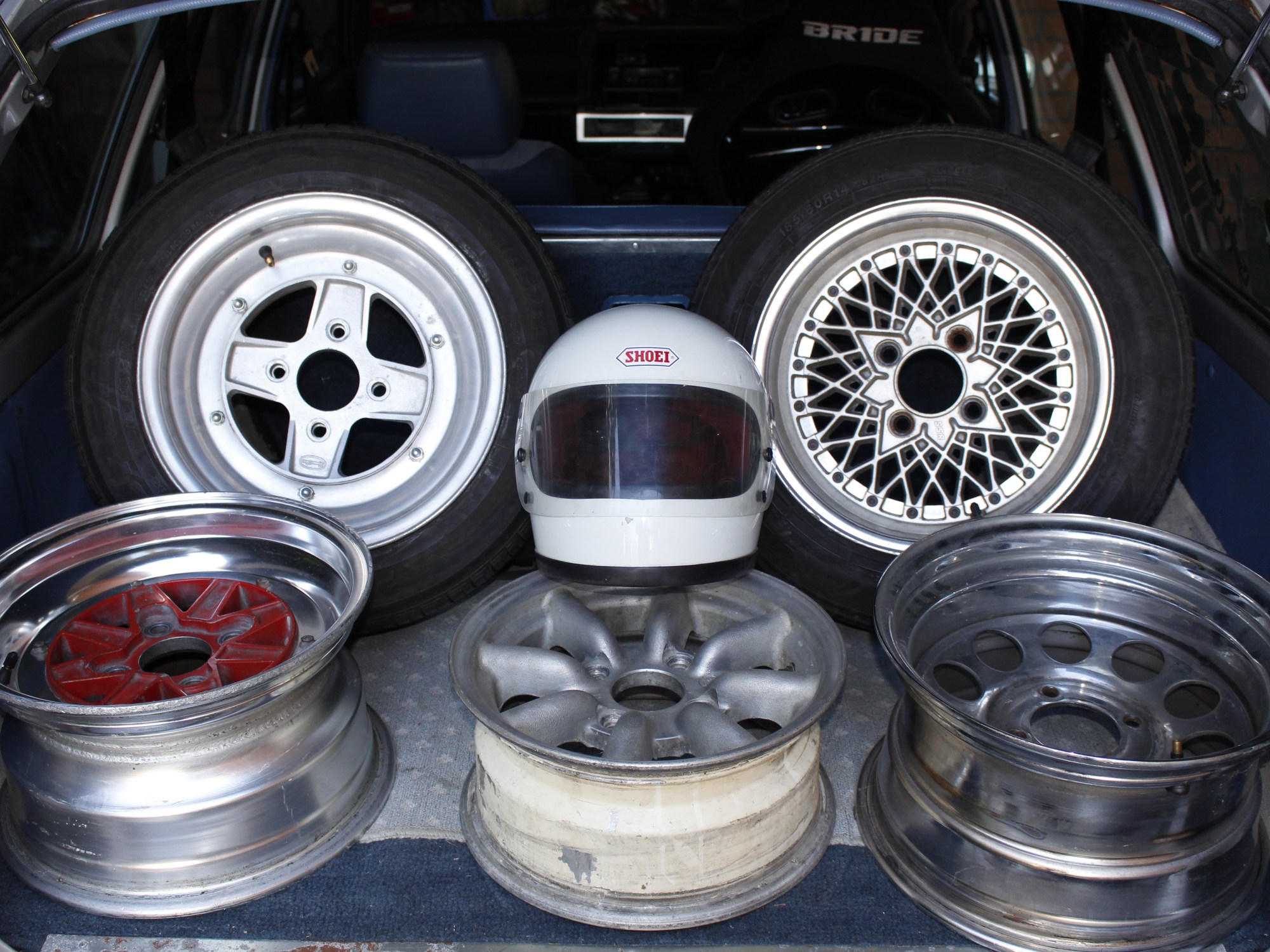A small display I set up in the back of the wagon pre-show. Can you identify all the wheels? Steelies not included.