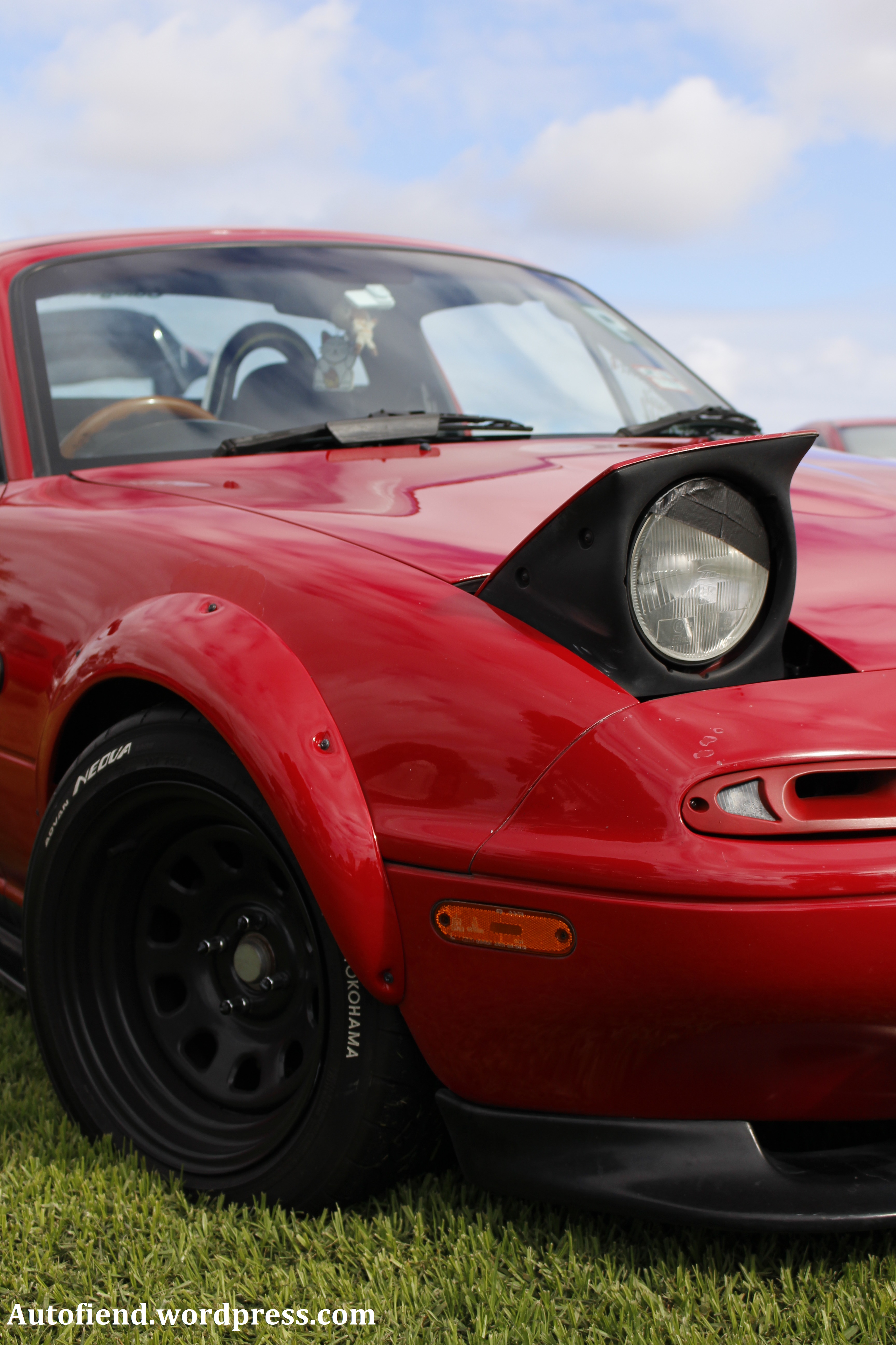 Widened steelies with bolt on fender flares is always a tough look especially when on a lowered MX-5. The Advan AD08 tyres are a very aggressive pattern also.