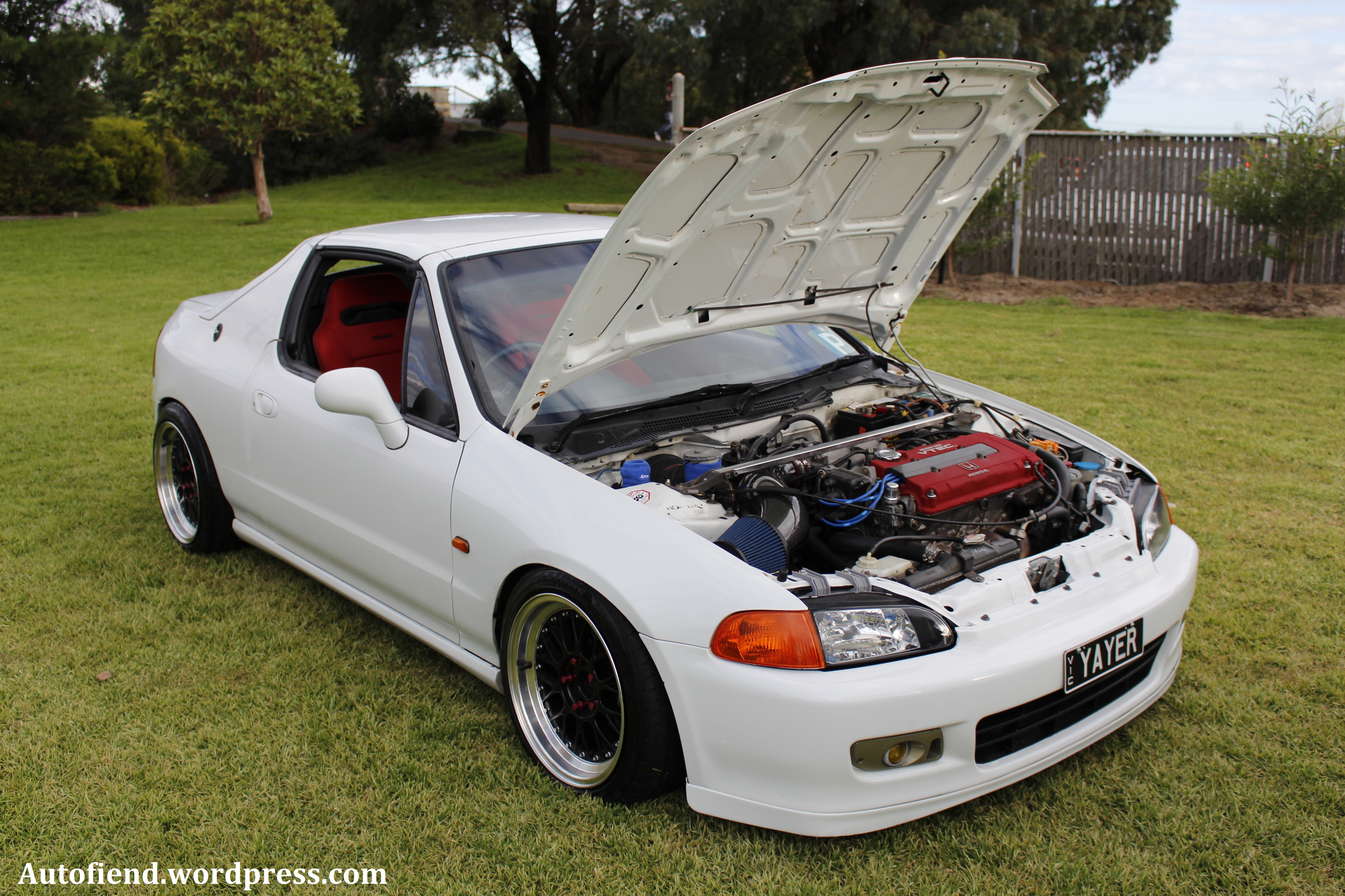To finish up we have a unique vehicle that, though a Honda CRX (Del Sol) has the front of an EG Civic with the B18C out of an Integra DC2 Type R. Would be a very quick car.