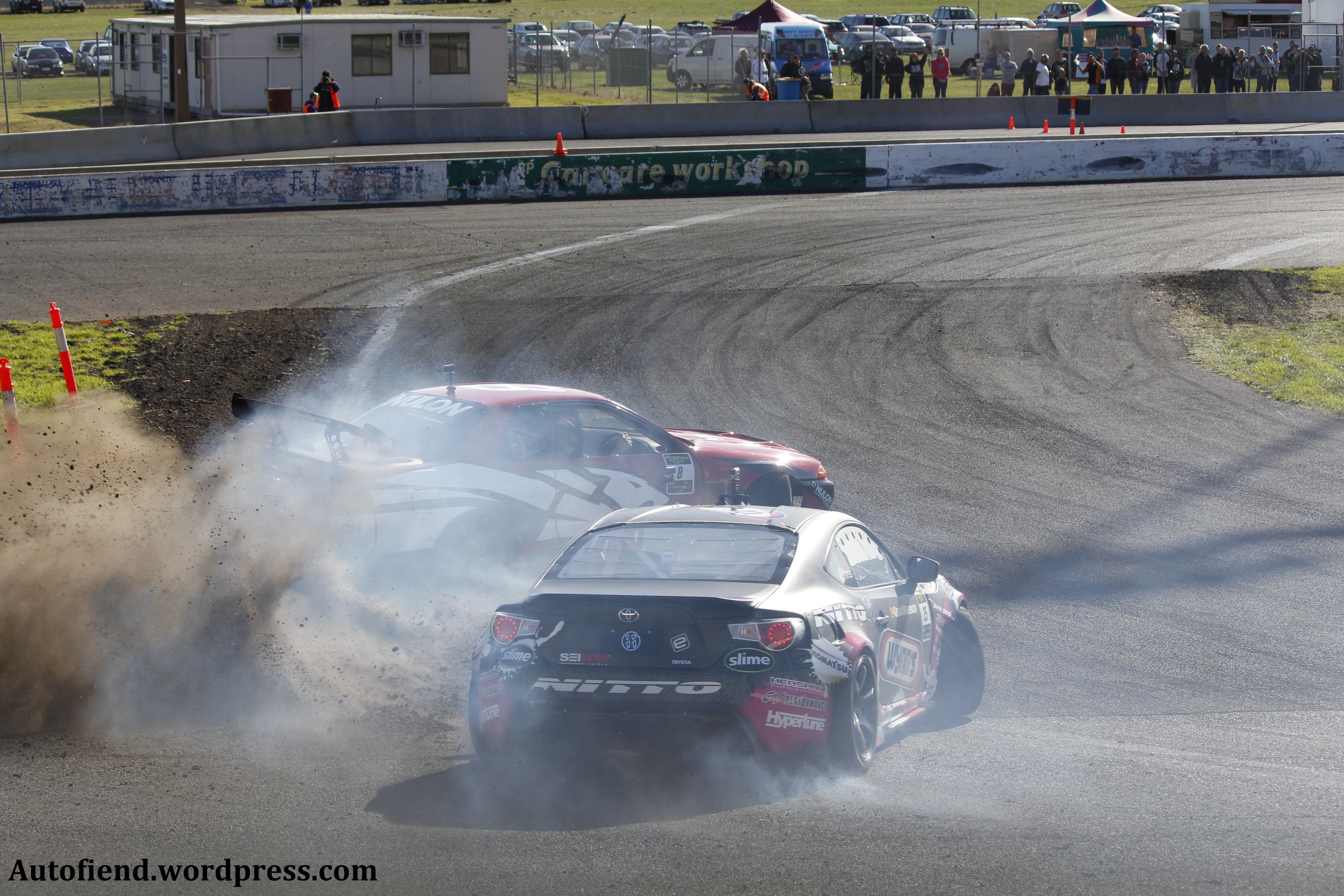 It doesn’t always go to plan as is evident by the damage to the front of Ryan ‘Slide’ Cummings Slide Industries S13.5.