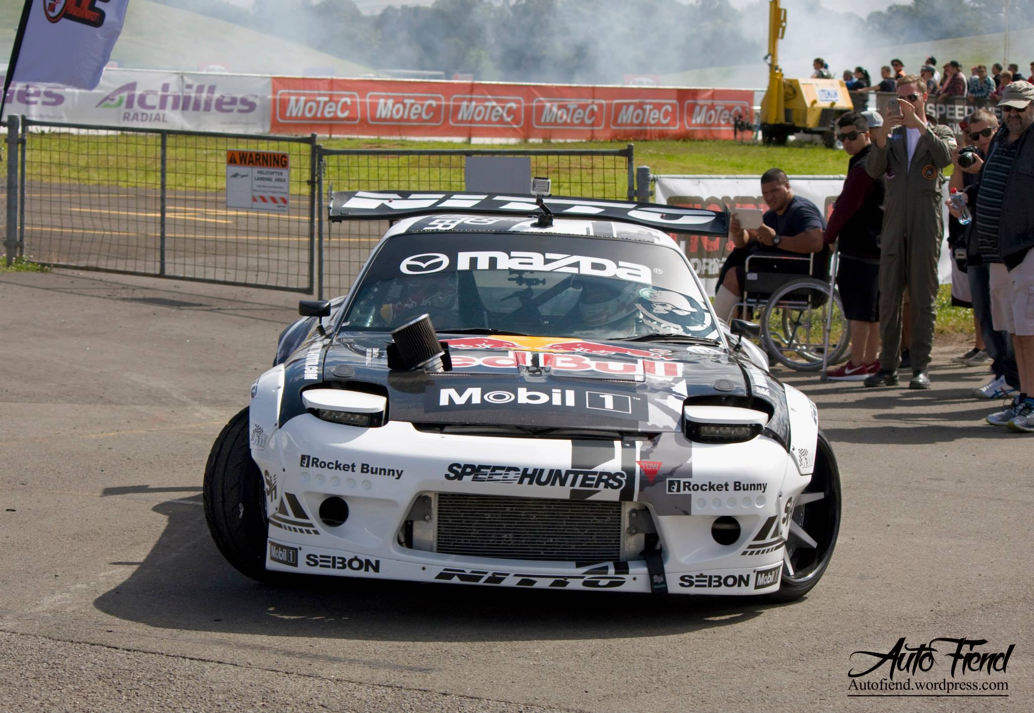 First up we have the very well known Red Bull, Mazda, Rocket Bunny and Speedhunters sponsored “MADBUL” Mazda RX7 of “Mad” Mike Whiddett, this machine needs no introduction and no one could hear you making one over the sound of its 26B quad rotor buzzing away.