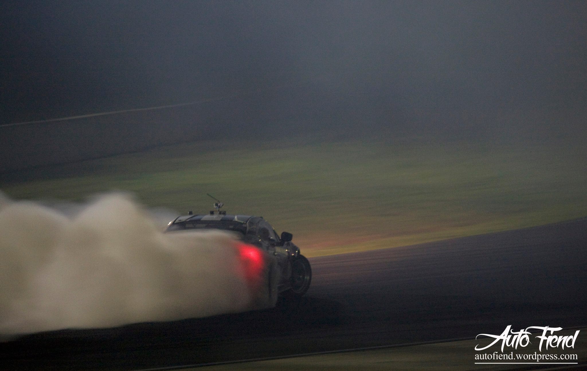 Aasbo turning the night sky white with brutal Toyota V8 power.