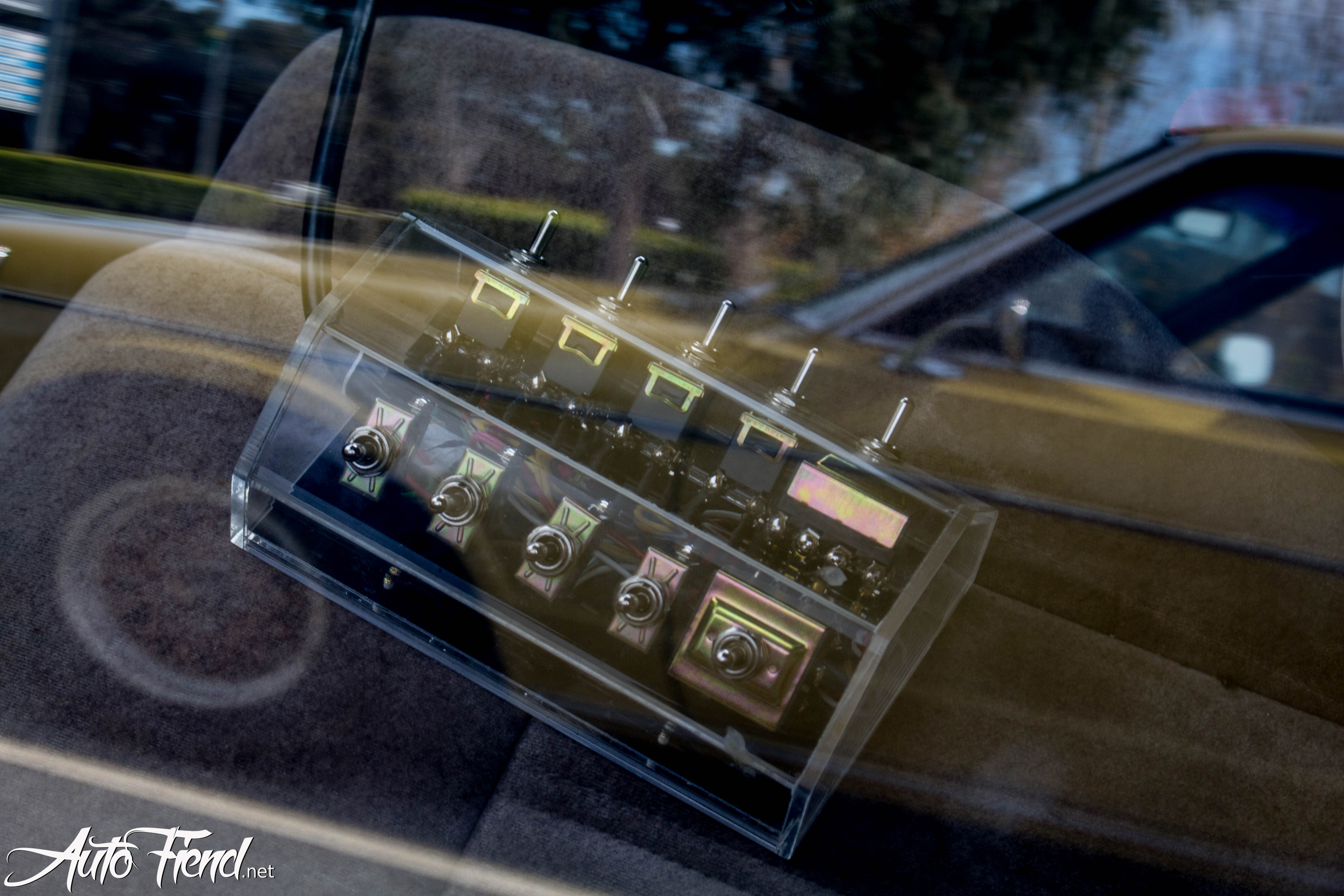 A look inside revealed the switch that controls the changes in elevation, and why not, these old saloon’s are quite cheap, super comfy and look so good dumped. Airbags or hydraulics, my money is on bags.