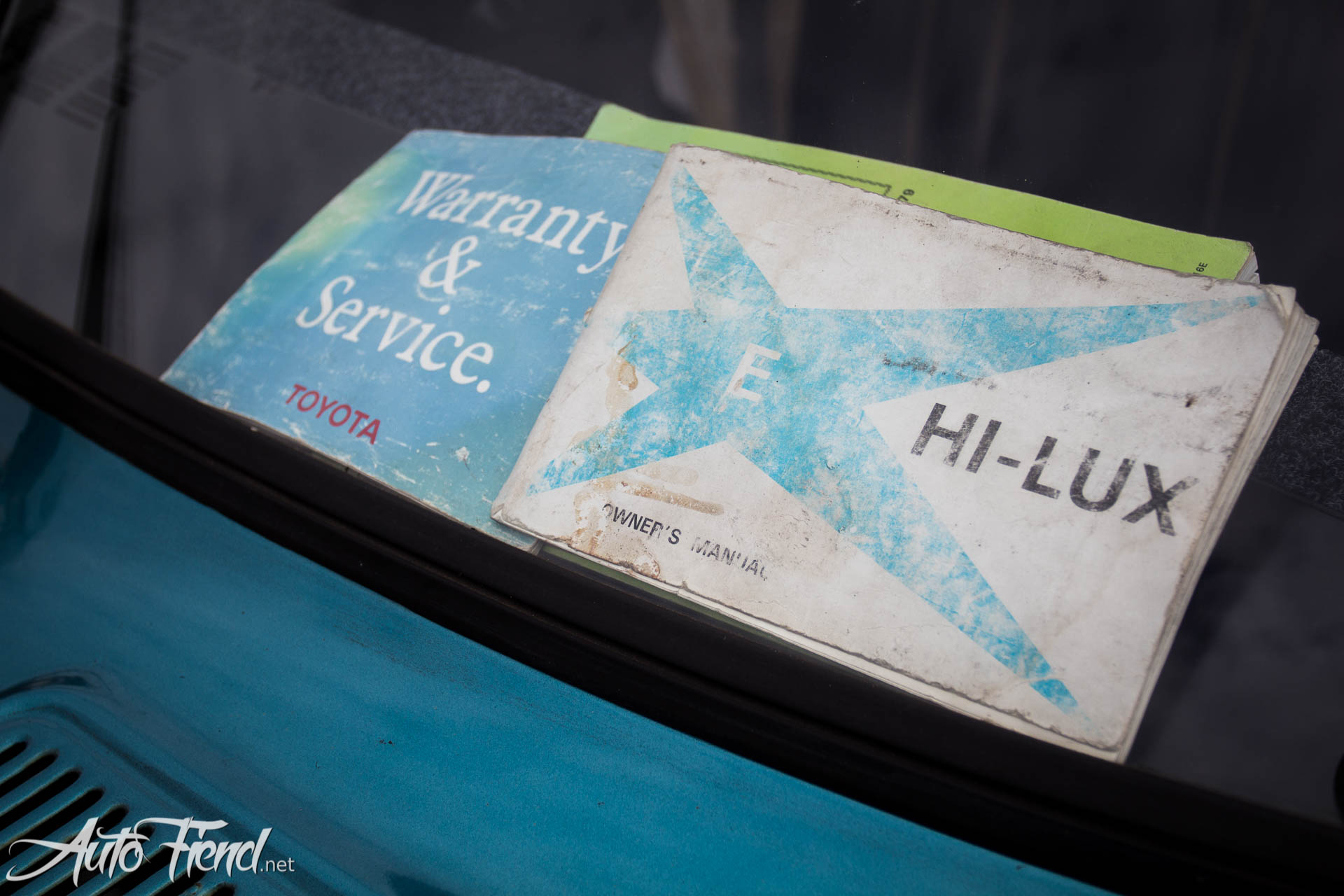 We finish on Mitch’s RN25 Hilux, another machine making all the right moves. Check out the original owners manual and warranty booklets.