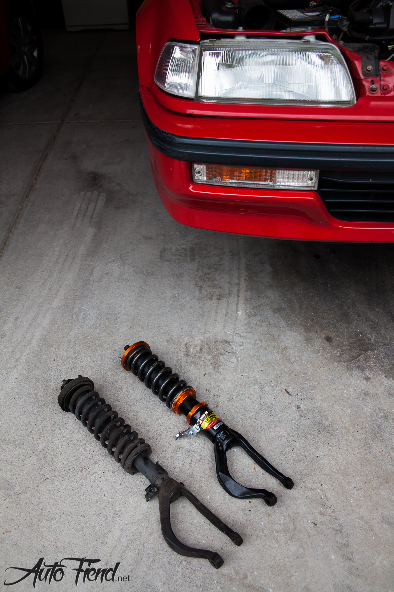 Something that is required for the kit is the use of EG Civic Front suspension forks, since the factory gear works fine and the EG has a larger diameter front strut.
